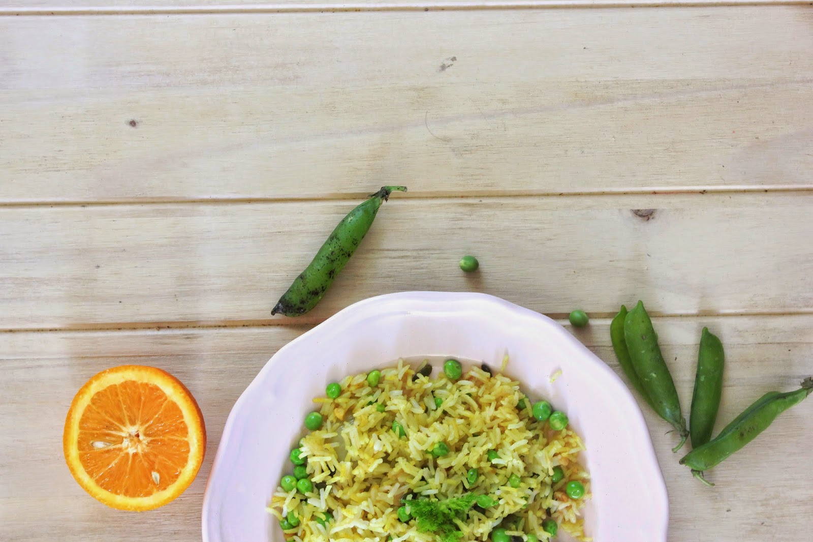 - Lorsque tout est bien mélangé, ajoute alors tes petits pois quelques minutes, et le jus de ton orange, et sers aussitôt!