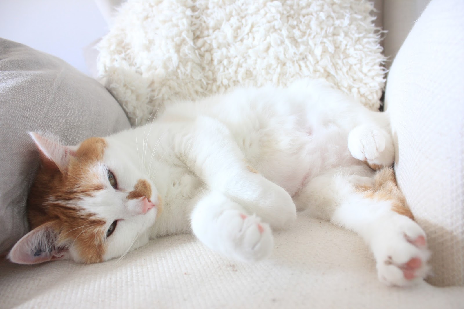 Elle devient obéissante la majeure partie du temps (l’autre étant celle où elle fait des bêtises), on a réussi à lui faire perdre un peu de poids (la véto nous a dit sans détours qu’elle était grasse comme pas deux, merci madame la véto pour le tact ♥), et elle nous fait toujours autant rire avec ses positions farfelues au top niveau quelque part dans un art entre la contorsion et le confort absolu.