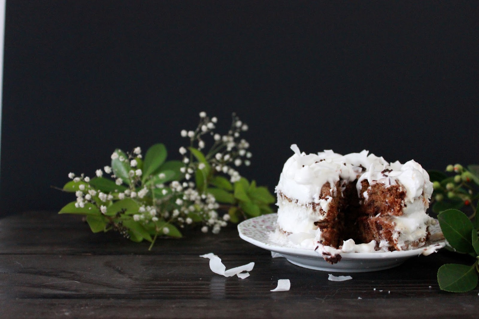 - Enfin, commencez par déposer une couche légère de crème partout. Si vous n’êtes pas à l’aise avec l’exercice, passez le au froid un moment, pour que cette couche durcisse. C’est une bonne habitude à prendre pour de plus gros gâteaux pour lesquels vous aurez certainement des miettes qui seront emprisonnées dans cette première couche pour laisser la deuxième indemne.Continuez, puis lissez le dessus, les cotés. L’obstination fait miracle, mais si votre crème chauffe, n’hésitez pas à la passer au frais, sinon vous n’arriverez à RIEN.J’ai décidé d’ajouter des copeaux de coco puis de décorer avec une douille unie, mais rien ne vous y oblige.Vous pouvez choisir l’indécence et faire fondre du chocolat pour le faire couler dessus.
