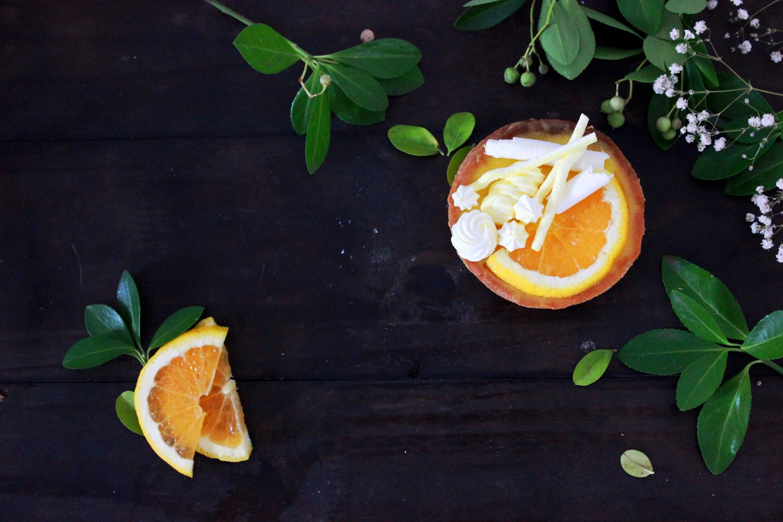 L’orange est un fruit très aromatique, et beaucoup plus doux que le citron, c’est pour cette raison que j’ai préféré ne pas meringuer toute la tartelette parce que ça aurait été tout bonnement TROP sucré. J’ai d’ailleurs conservé un peu de citron dans le curd pour apporter de l’acidité, qui me paraît nécessaire dans ce genre de crèmes.