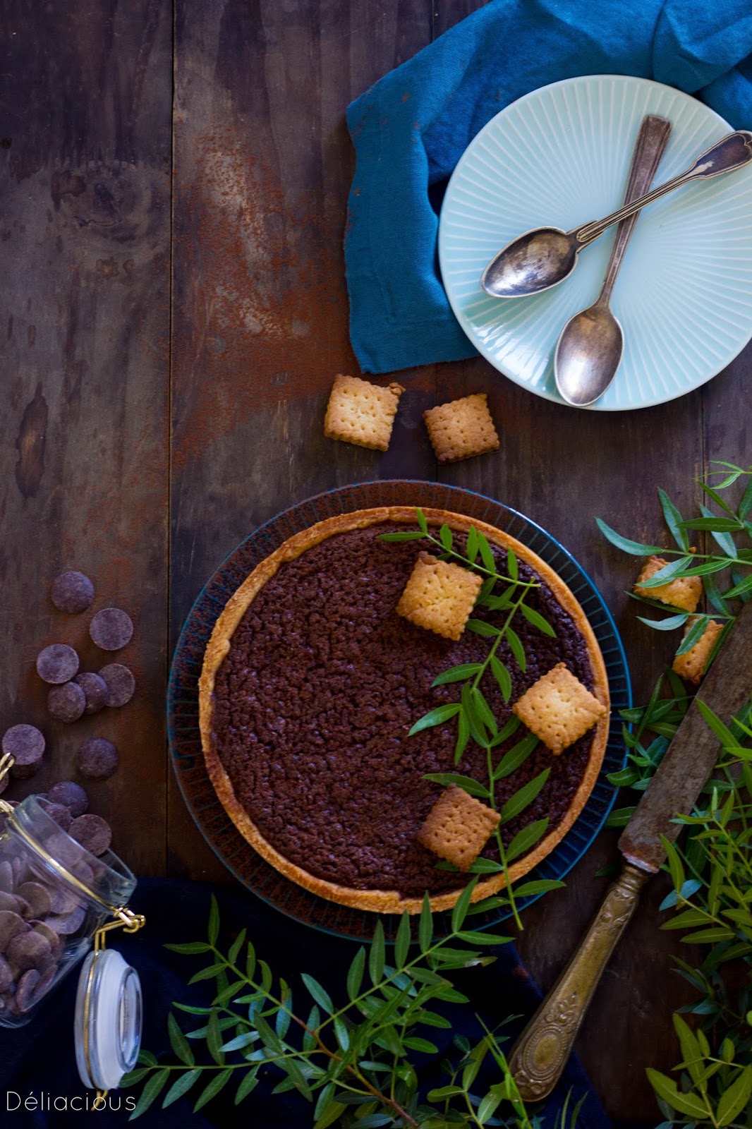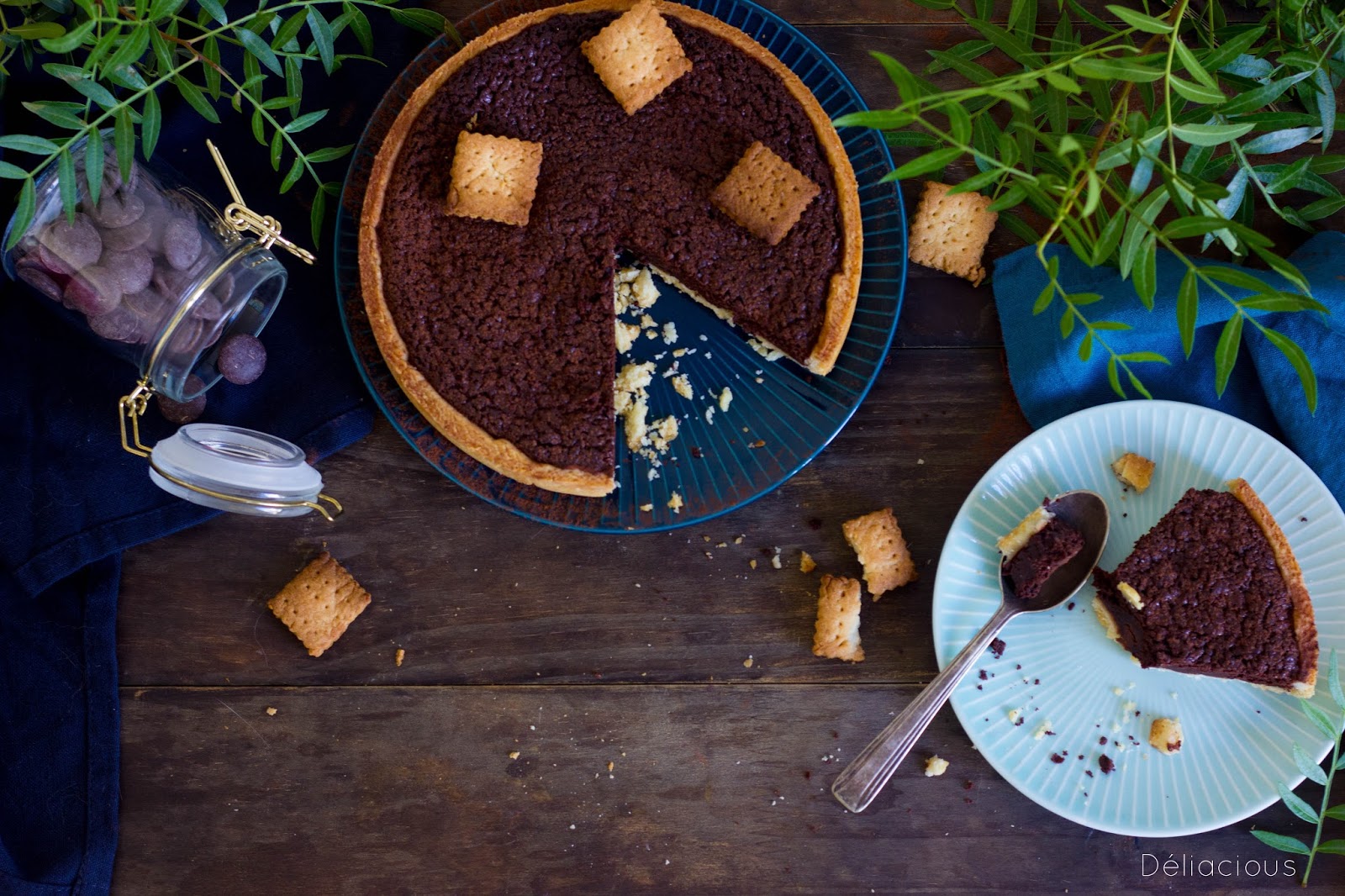Le fait est que cette tarte ressemble à un genre de brownie dans une tarte, c’est très bon et pas très long à faire et ça change.